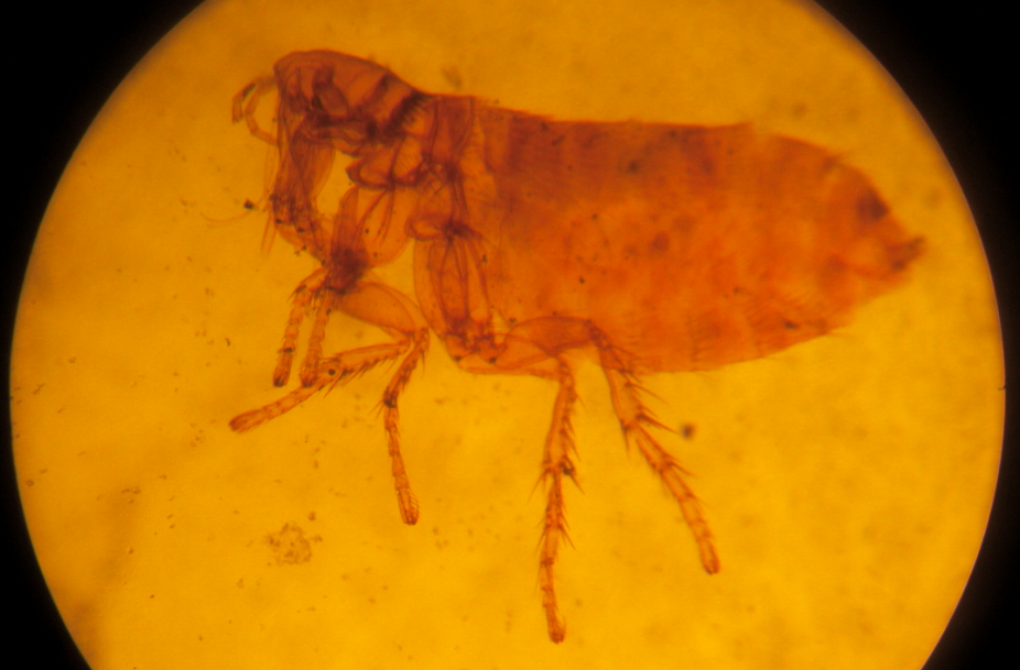 致癢蚤(人蚤)(Pulex irritans):蚤體大深棕色,無(wú)櫛(zhi)。眼大而色深,眼鬃位于眼下方,中胸腹側(cè)板無(wú)縱脊,雌蟲(chóng)受精囊頭部圓形,尾部細(xì)筒狀。...2015-06-19