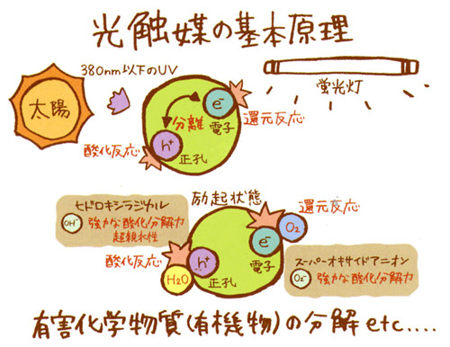 藍(lán)色衛(wèi)士光觸媒產(chǎn)品作用機(jī)理:光觸媒在于吸收光能后會(huì)釋放正、負(fù)電子,空氣中的水分子捕獲正電子形成氫氧自由基(-HO),氧分子捕獲負(fù)電子形成負(fù)氧離子(O2-),氫氧自由基與負(fù)氧離子具有強(qiáng)大的氧化分解能力,能將空氣中的有機(jī)化合物氧化分解成無(wú)害的二氧化碳和水,并能破壞細(xì)菌、霉菌這些有機(jī)物的細(xì)胞膜,固化病毒的蛋白質(zhì),在殺菌的同時(shí)還能分解細(xì)菌尸體上釋放出的有害復(fù)合物。