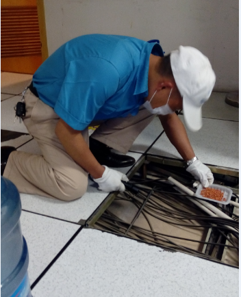 在機(jī)房、實(shí)驗(yàn)室等一些放置了精密設(shè)備或儀器的地方,為杜絕潮濕、靜電等因素的影響,一般都在房間內(nèi)設(shè)置了架空層,這一隱蔽的部位為鼠害的藏匿提供了良好的條件,在鼠害的防治工作中為不遺留死角,我們需要采用吸盤(pán)將其地面的地板取開(kāi),進(jìn)行檢查。