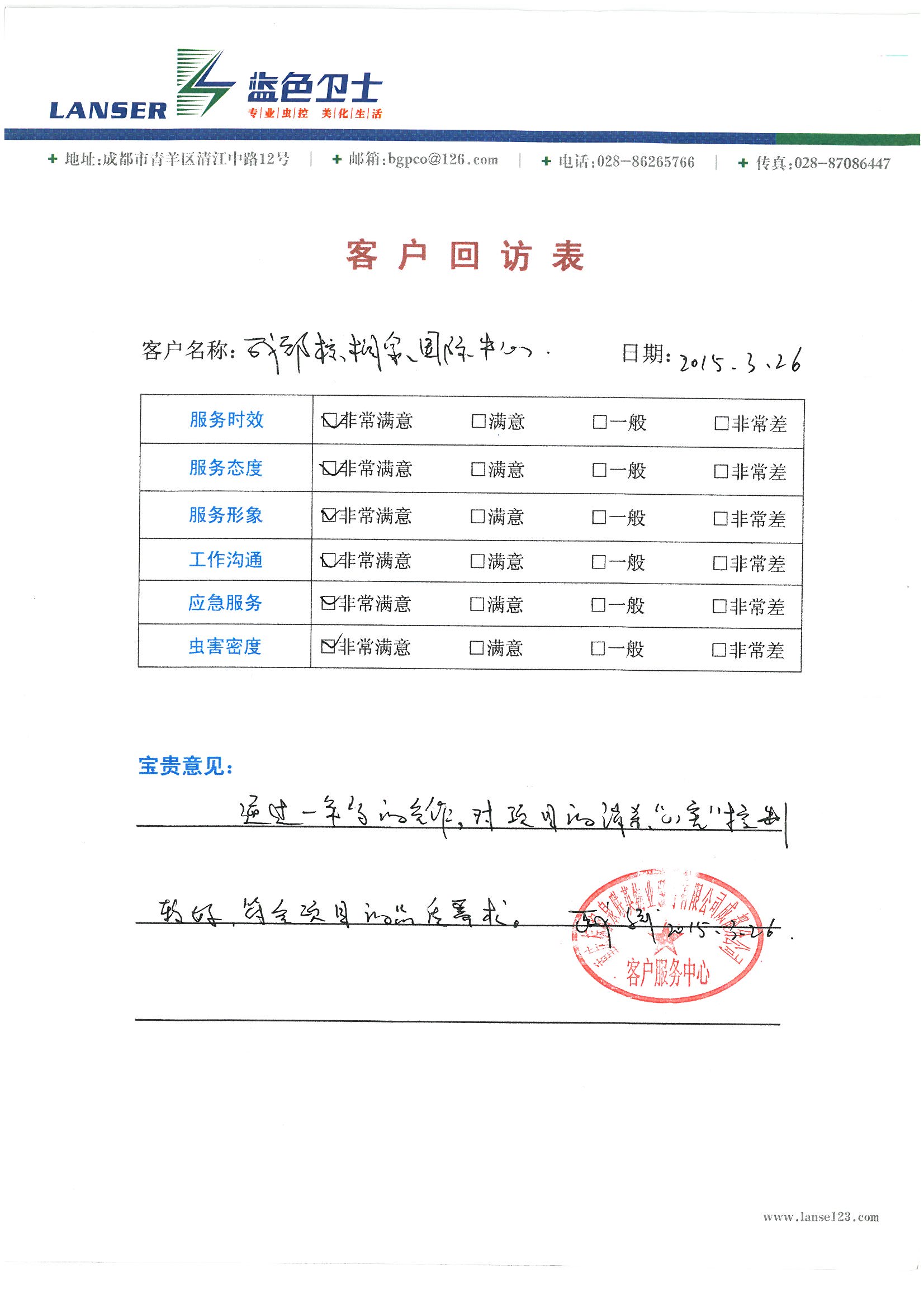 通過一年的合作,對(duì)項(xiàng)目的消殺、四害控制的較好,符合項(xiàng)目的品質(zhì)要求!